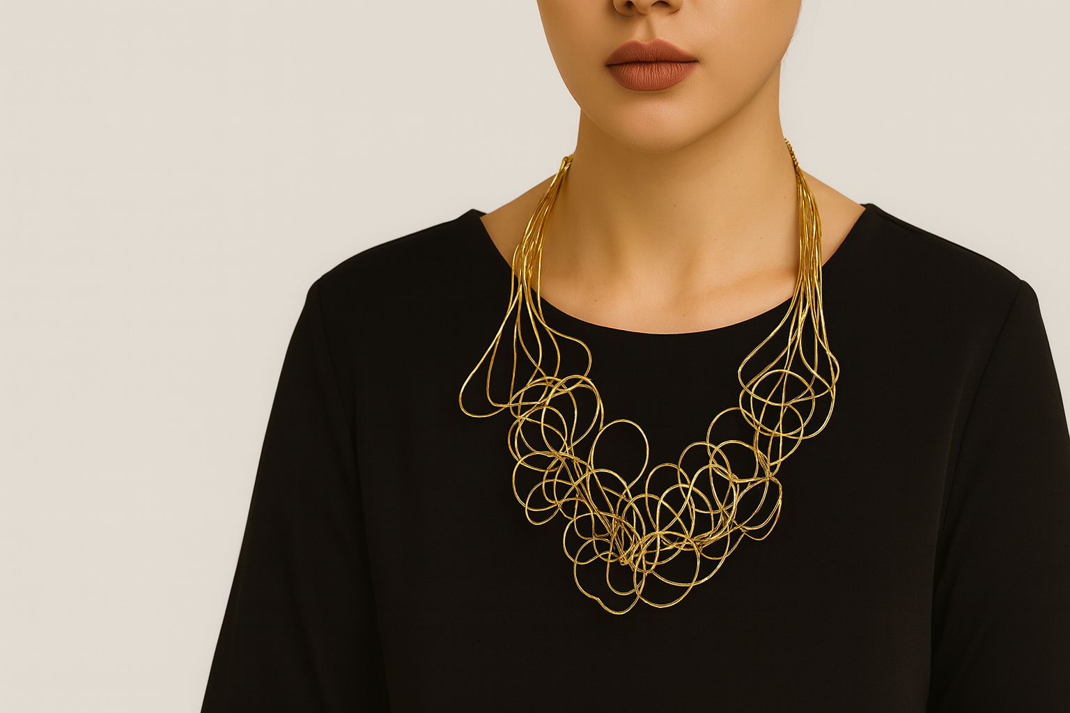 Collana Scultura Metallica – Disponibile in Oro, Argento e Tricolore