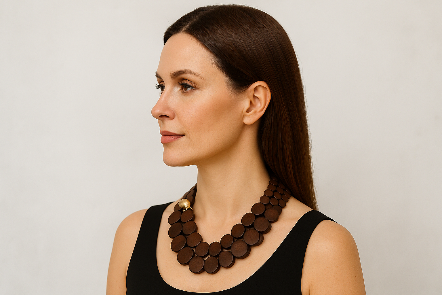 Collana Tribale con Dettagli Dorati – Marrone / Nero