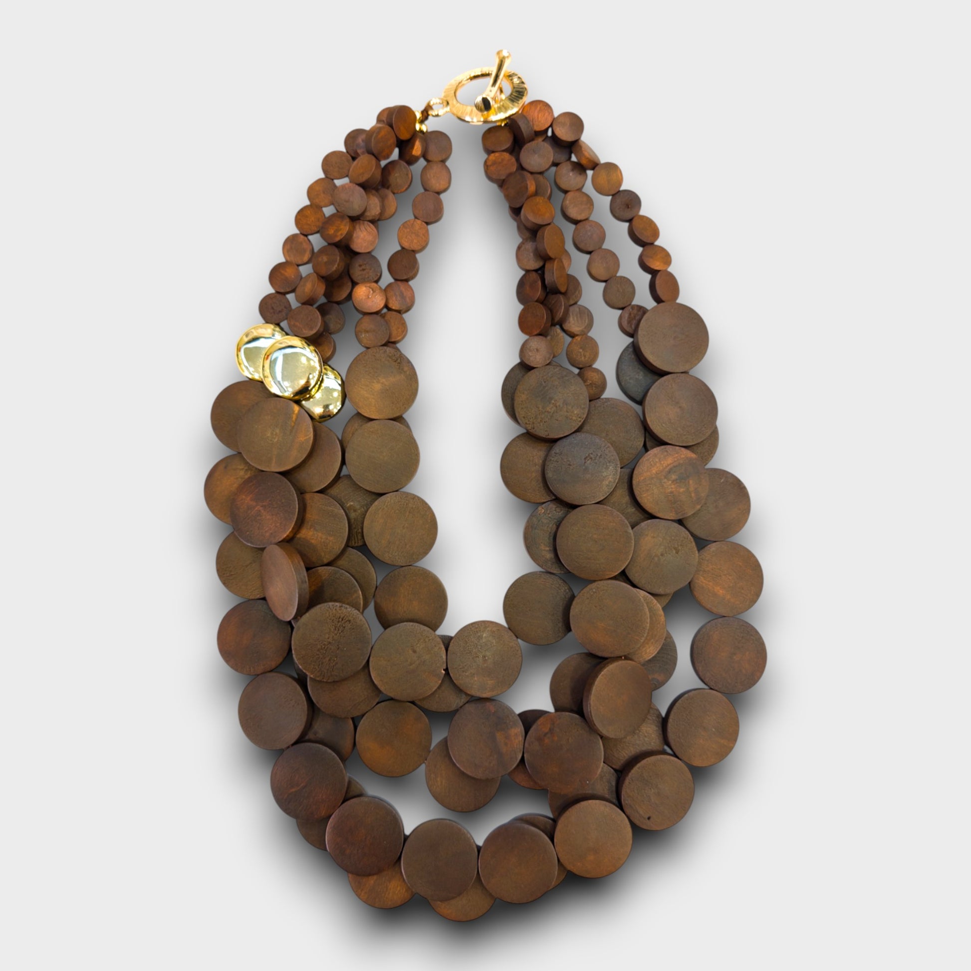 Collana Multifilo in Legno Naturale e Dettaglio Oro