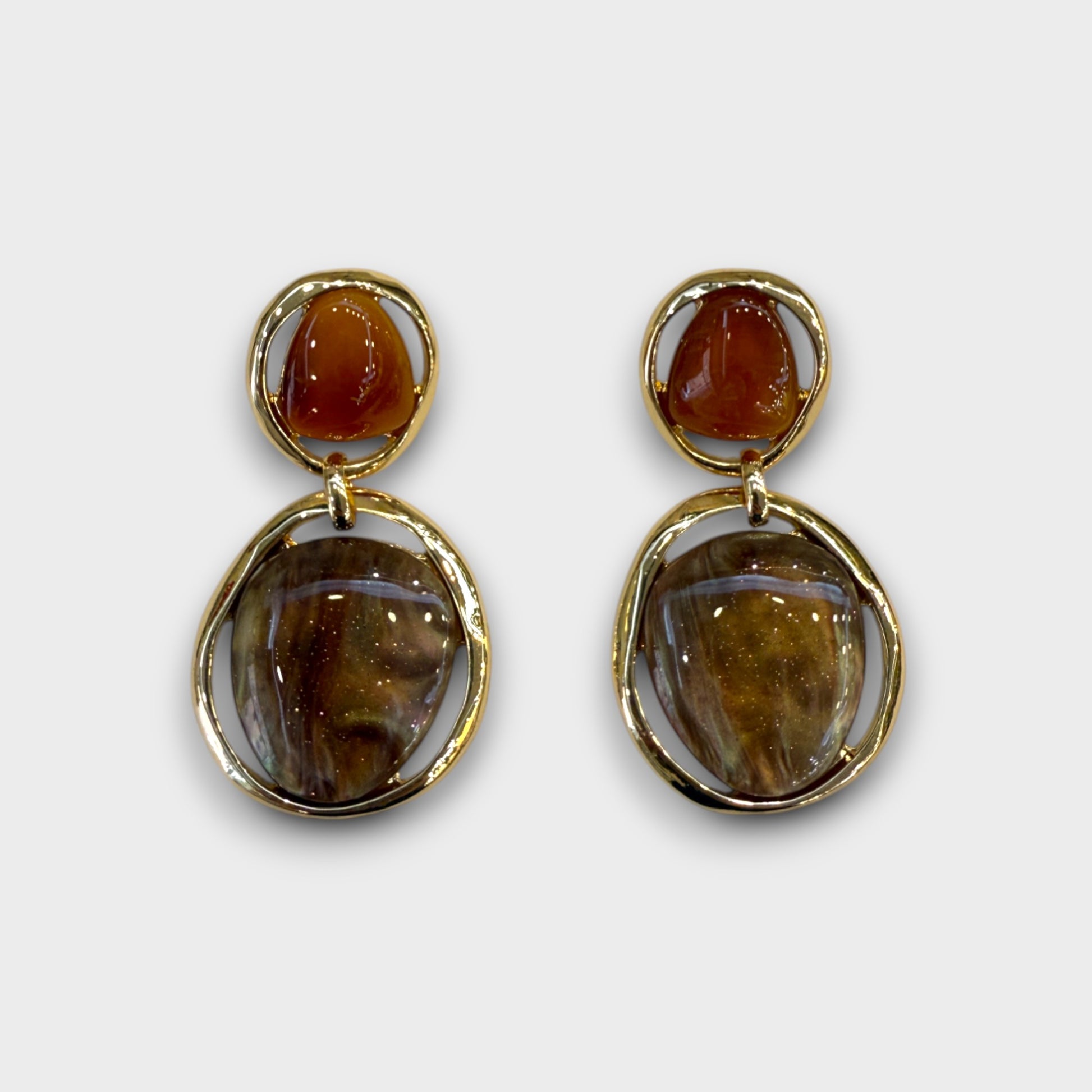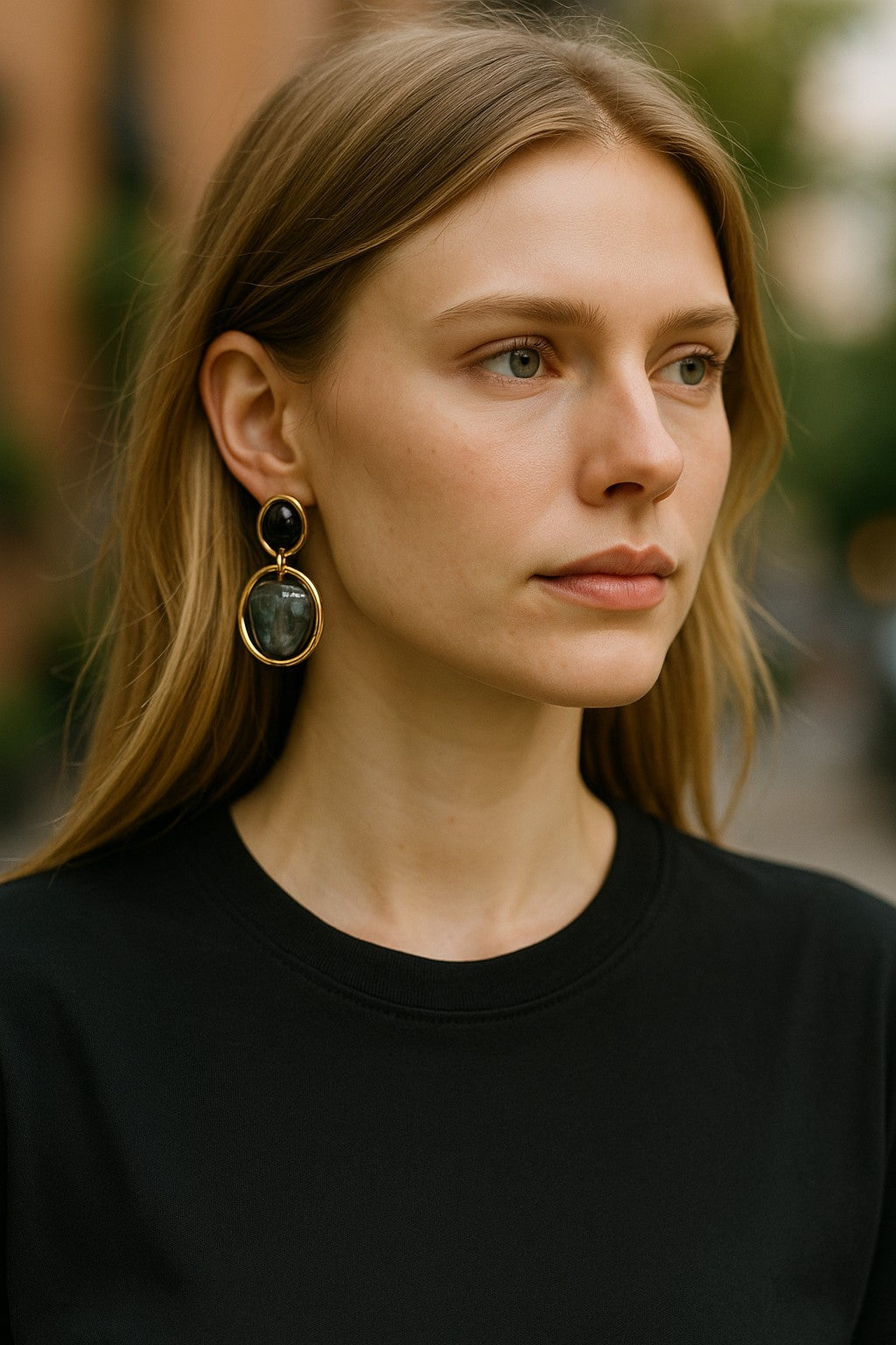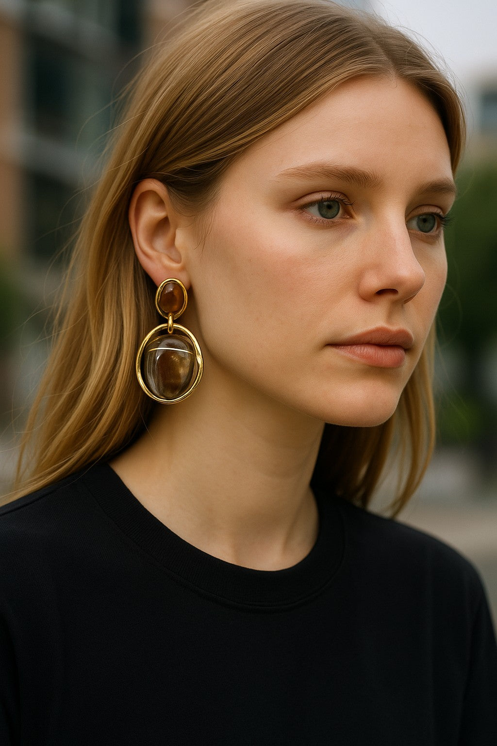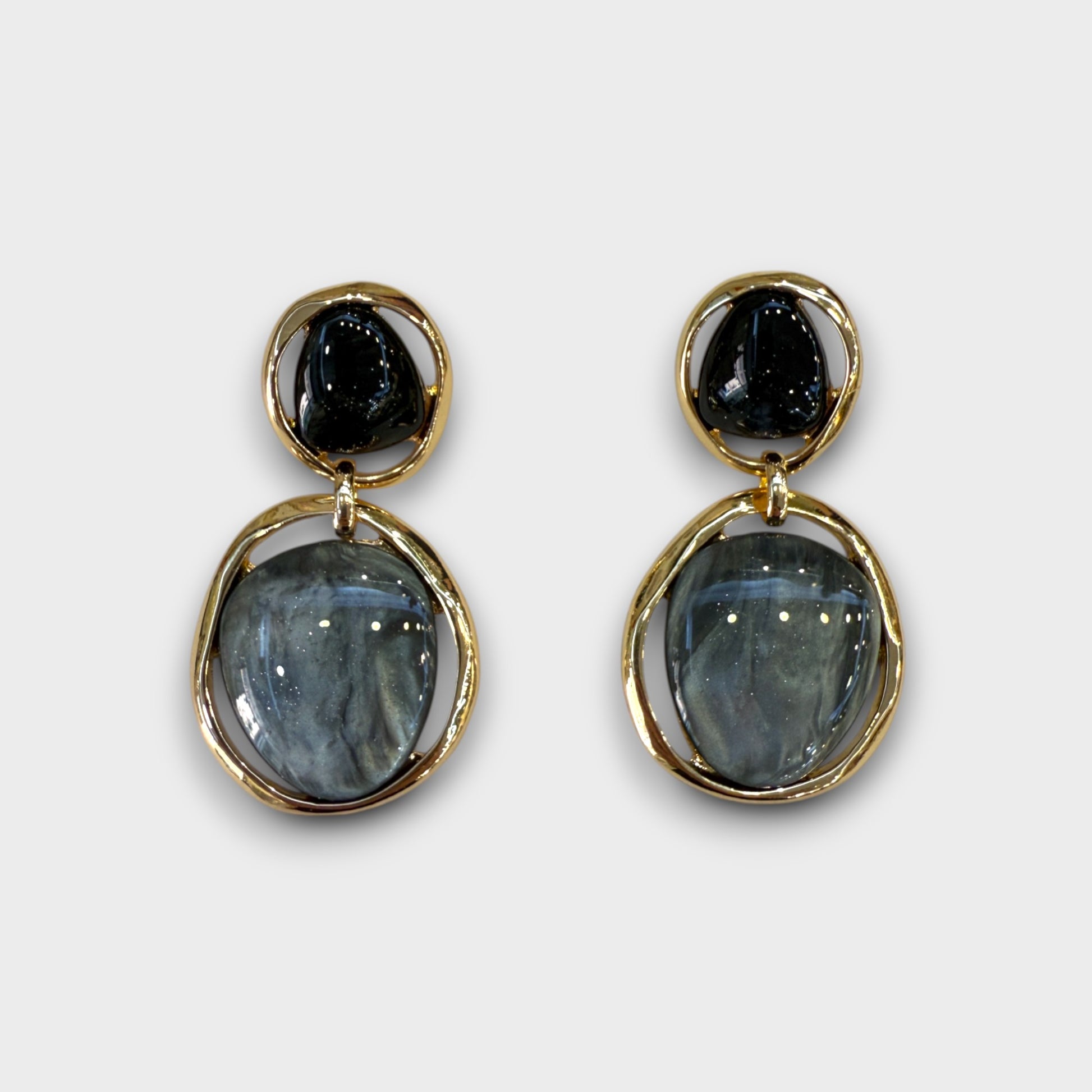 Orecchini Ovali Effetto Cristallo – Nero & Ambra